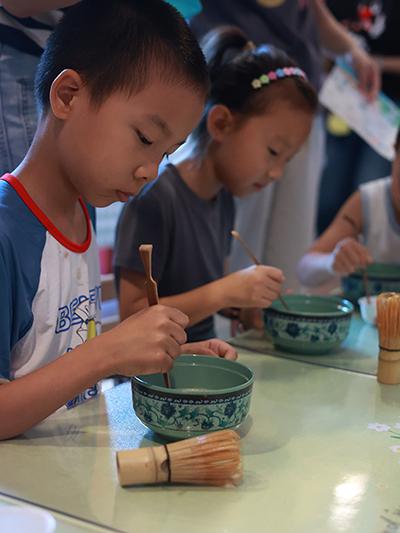 在“江南夏趣”杭州主题周活动中,孩子们在“茶趣”环节,通过化身“小小茶农”,体验炒茶、点茶,感受杭州茶文化的深厚底蕴;“编趣”环节通过毛线编织触摸上古江南的蛇图腾文化;“戏趣”环节以《白蛇传》为灵感跳起青蛇舞;“竹趣”和“探趣—断桥、竹林搭建”环节则结合STEAM理念,用竹条、软积木搭建拱桥和竹屋,锻炼动手能力与空间思维,全方位体验杭州的茶文化、非遗技艺与民间传说。
